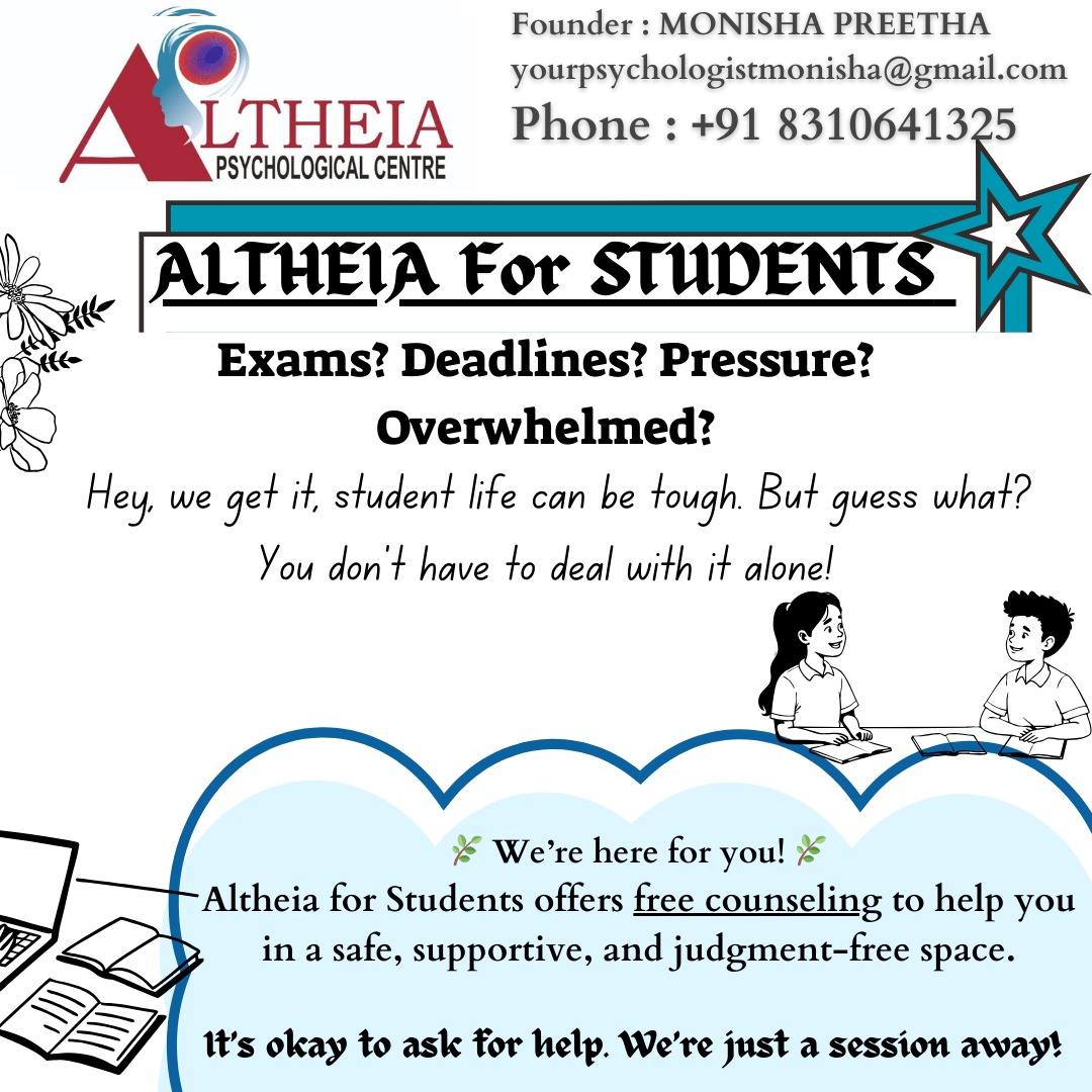 Founder & Psychologist Altheia Psychological Centre | Bangalore | April 2024 – Present
